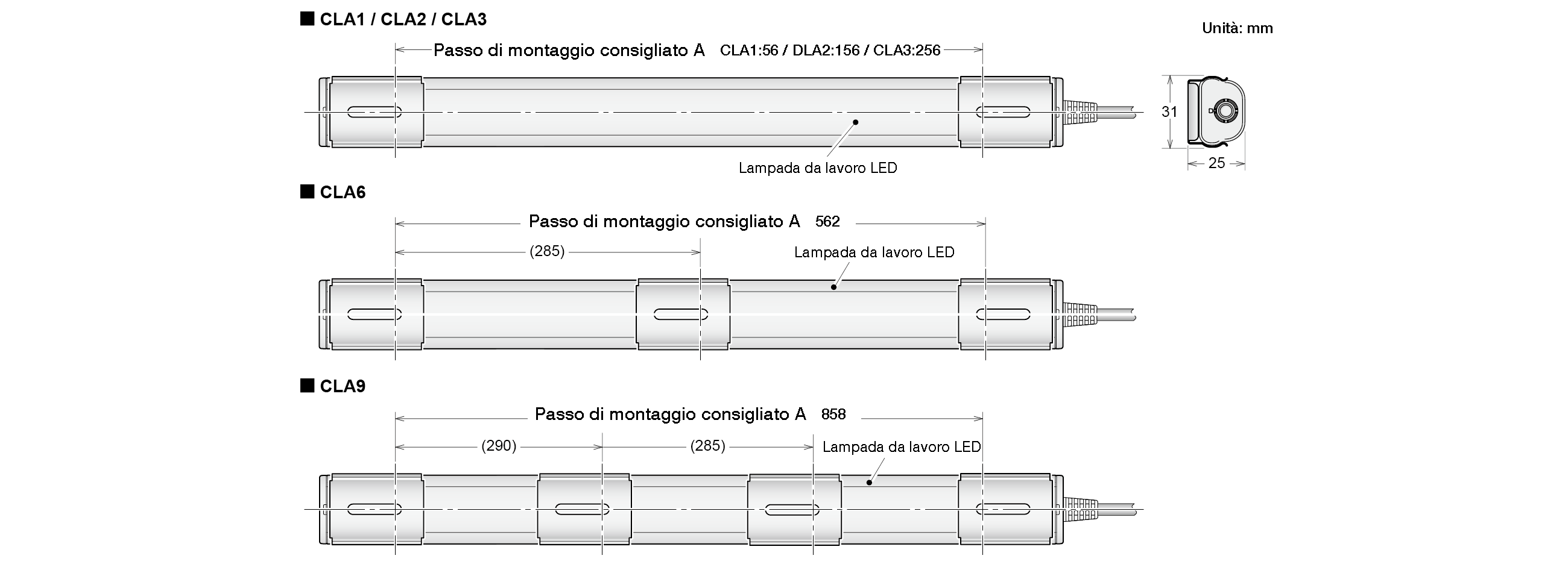 Schema di riferimento per l’installazione della lampada da lavoro a LED